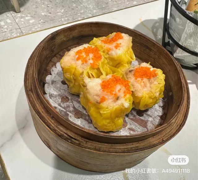 4. 鮮蝦燒賣皇:外皮金黃酥脆,內裡鮮嫩多汁,鮮蝦的鮮甜味道充分展現,是一道必點的美味點心。