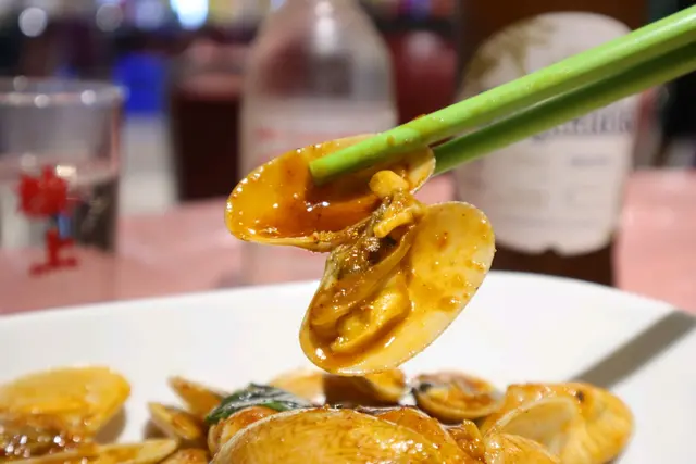 豉椒炒蜆 ($128): 豉汁濃郁稠密,微甜,蜆肉幾入味。