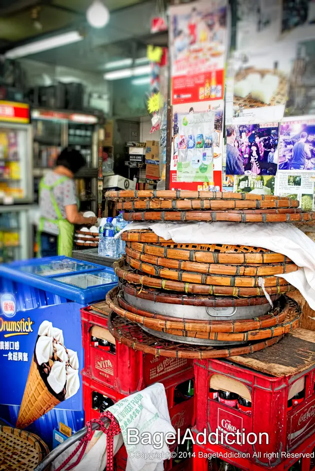 坤記並沒有堂皇的裝飾,有的是印證時代變遷的竹籮及蒸糕竹的器皿。