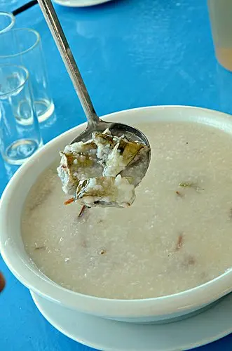 招牌泥粥,肥大的泥,煲出來的粥底味道很鮮,粥底雖不夠綿,鮮甜味卻令人回味。蛋菜腿炒飯,炒飯則普普通通,比較濕腍。蒜蓉炒雜菜,吃了那麼多海鮮及肉類,也要吃點蔬菜來作點平衡,雜菜炒得不太油膩,感到很好。