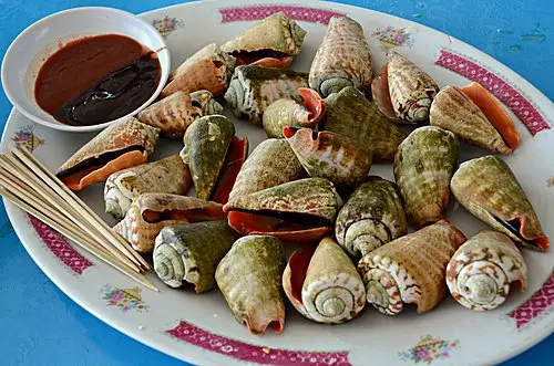 套餐外,還追加了三款海鮮,白灼海跳螺,這種跳螺也是第一次吃。外型像是圓錐體的,把螺肉用竹籤挑出來吃,爽口鮮甜,帶點嚼勁。
