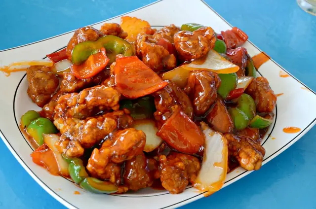 菠蘿咕嚕肉,咕嚕肉炸得香脆不乾硬,再加上甜酸汁、洋蔥、青椒及菠蘿炒,醬汁掛滿肉身上。吃下去還是帶微脆,酸香味足,令人開胃,但略嫌醬汁較為濃稠了一點。