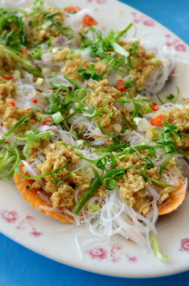 蒜蓉蒸扇貝,那面層的粉絲比扇貝更為吸引,粉絲吸收了蒜蓉香及扇貝的鮮味,用來連汁拌飯吃最好。