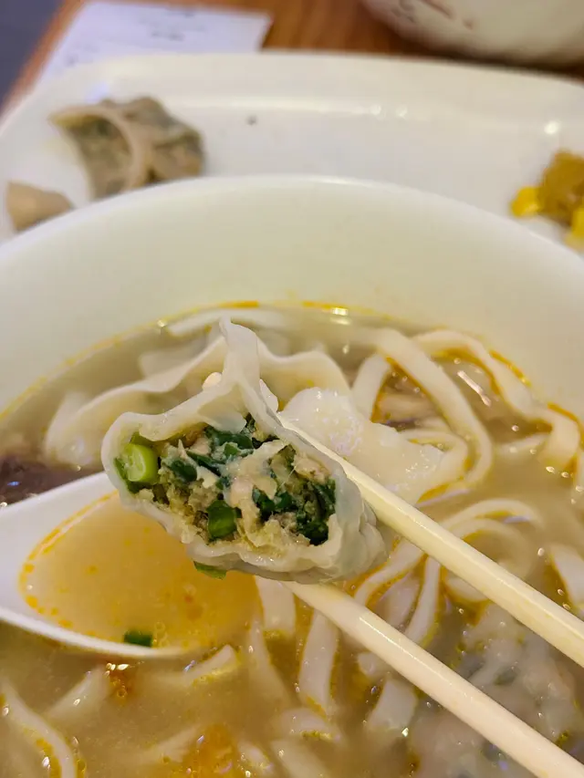 韭菜鮮肉湯餃和白菜鮮肉湯餃配上海麵,是店內必試招牌。餃子皮薄而有彈性,內餡新鮮多汁,韭菜的香氣與鮮肉的甘甜完美融合,每一口都能感受到用心手工製作的誠意。湯底是老火椰子豬骨雞湯,湯頭清甜鮮美,椰子的淡雅香氣提升了整體風味,喝起來滋潤且不油膩,為餃子增添更多層次感。