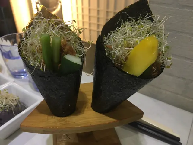 手卷各2款有蘆筍素香鬆及芒果,素香鬆好有肉鬆既感覺但食落又無咁甜同咸。芒果鮮甜內裏以豆芽菜當白飯簡單得黎又唔會太飽。