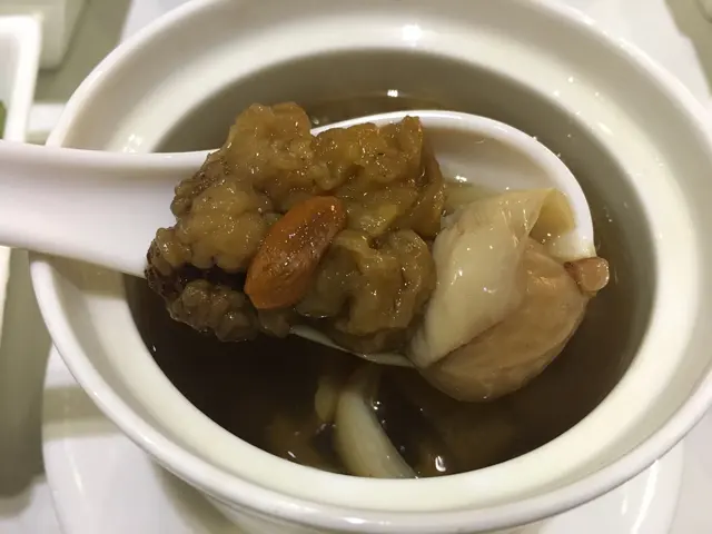 餐湯各一,中湯係燉湯味道無肉都好清甜而且帶膠質飲落好滑,內裏又足料。