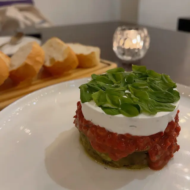 今晚叫了三文魚牛油果他他,配上一塊外脆內軟的麵包來食,好滋味🤤