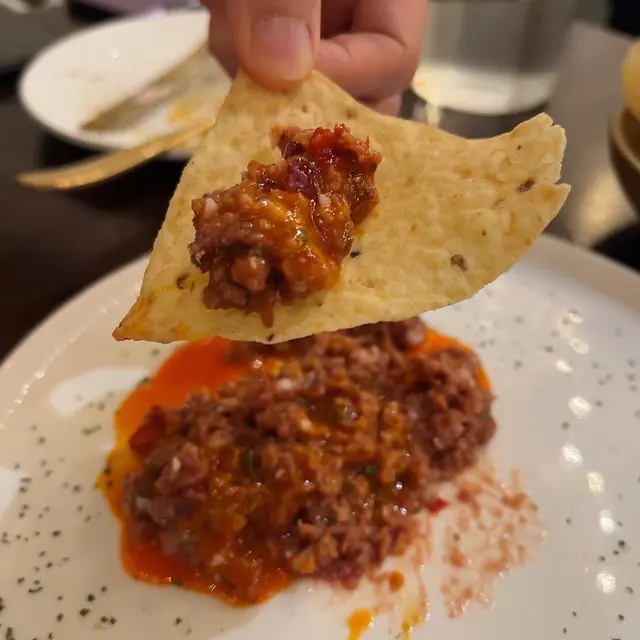 食食下覺得太好食,想叫多樣,追加了韃靼牛肉🤣 配墨西哥脆片好香口,食唔停口但有D熱氣🙈