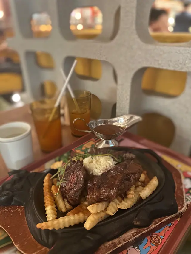 封門柳每個餐有3大舊牛,第一舊少少根,第二舊冇根易啲食,第三舊好多根,根本食唔到,可惜😪。鐵板汁好味,仲有好多薯條。