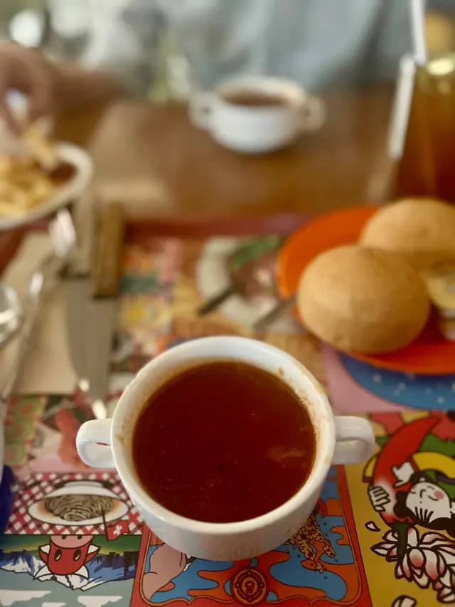 鐵板餐包一碗羅宋湯,一個餐包,同埋一杯佢哋好出名嘅Earl Grey 凍檸檬茶, 而喺counter度有炸起咗嘅薯條任食,不過就要self service, 另外佢個凍檸檬茶都係任飲,自己拎隻杯埋去斟就得,呢個10分欣賞,因為真係10分好飲👍🏻。