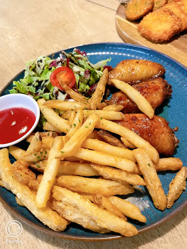 另外叫咗雞翼薯條,雞翼燒得啱啱好,薯條絕對夠趣口