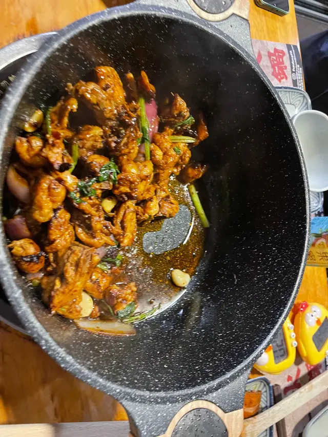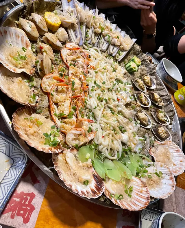雞煲,雞肉份量夠,叫咗小辣,夠惹味,之後上海鮮,個盆好大份,係7人份量,所以夠堆頭,龍𧄌,扇貝同海蝦最鍾意,全部充滿蒜味。