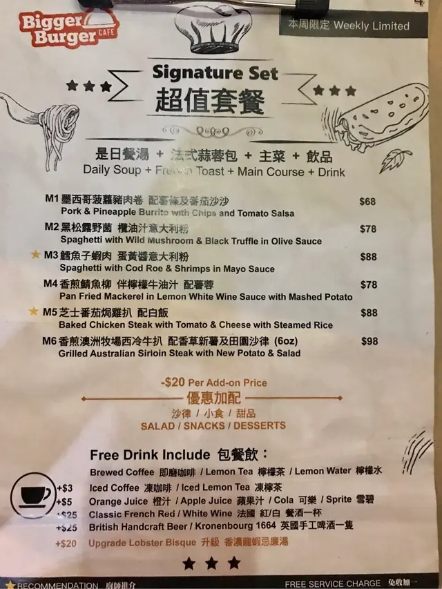 嚟到Bigger Burger Cafe, 一聽個名已經對Burger有所期待, 放工留定肚等食大 Burger !
