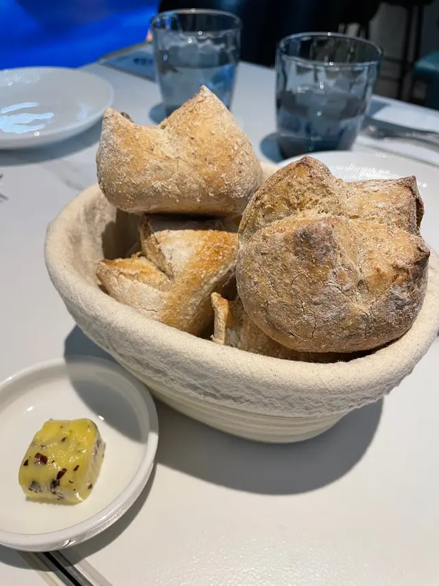 呢道菜嘅特別之處係👨🏼🍳廚師用咗唔同海鮮加埋一齊,濃縮到好似腸仔嘅質感同味道,用咗類似黑醋汁,代替咗平時食熱狗嘅茄汁,麵包鬆軟有牛油香🍞,成個配搭好食得嚟又有新鮮感🤤