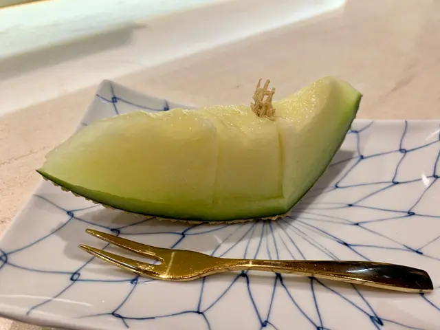 另一片加了北海道海膽和海鹽,魚肉襯托出海膽的鮮甜,吃過後在口中仍有鮮甜味。