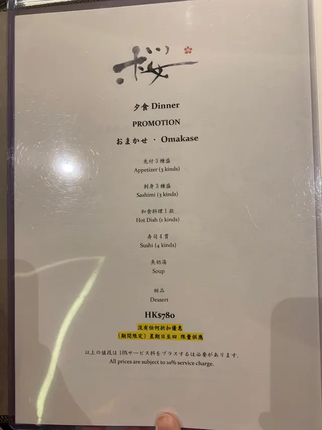 餐廳在做優惠,除平時的$1280 /$1680等的廚師發辦外,星期日至四還有$780的廚師發辦!當晚的魚生超高質,物超所值。