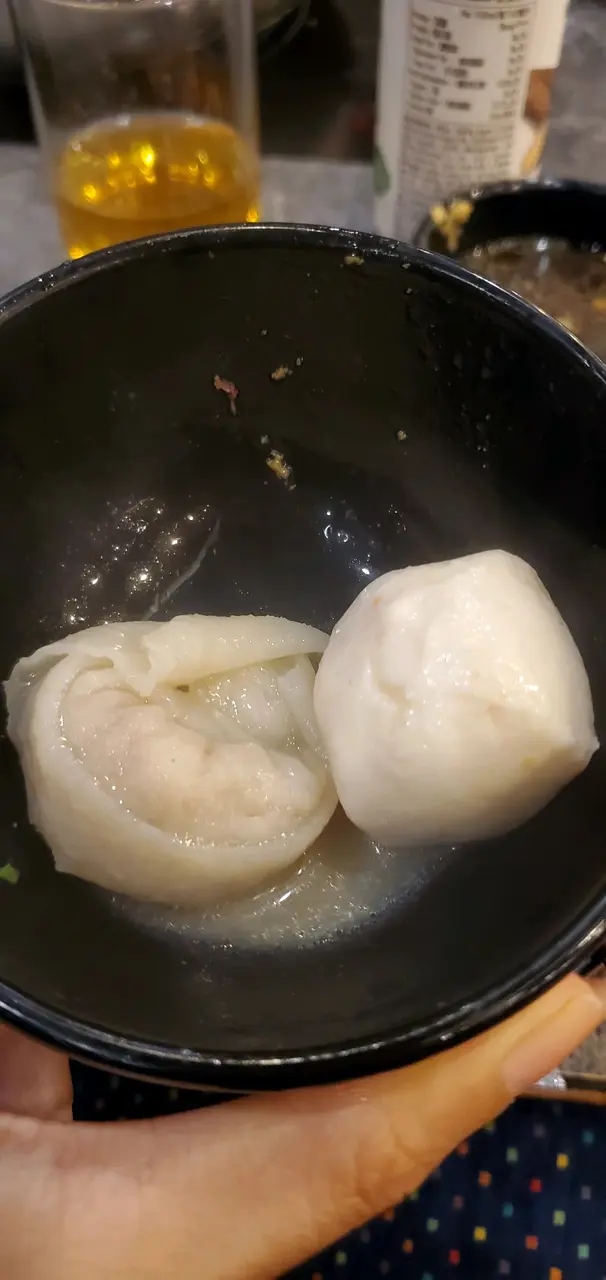 今晚有位朋友很喜歡照顧別人的, 我的碗子總是滿滿的, 韮菜餃,魚皮餃,墨魚丸, 芋絲,粉絲, 脆肉鯇魚片,帶子等等,所有食物都 有著椰子雞湯的味道, 特別喜歡!