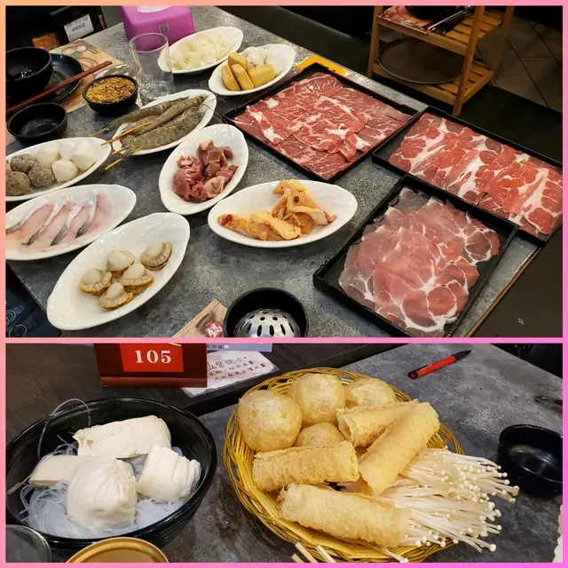 一轉眼, 服務員就送上一大堆的食物, 放滿整個桌面,看來所有食材都是新鮮的。 最喜歡打邊爐時食豬豚肉, 還有這兒有一口羊, 很少地方會見到, 這個一口羊,味道不錯,不會太騷味, 天氣開始涼,食一點羊肉保暖也不錯。