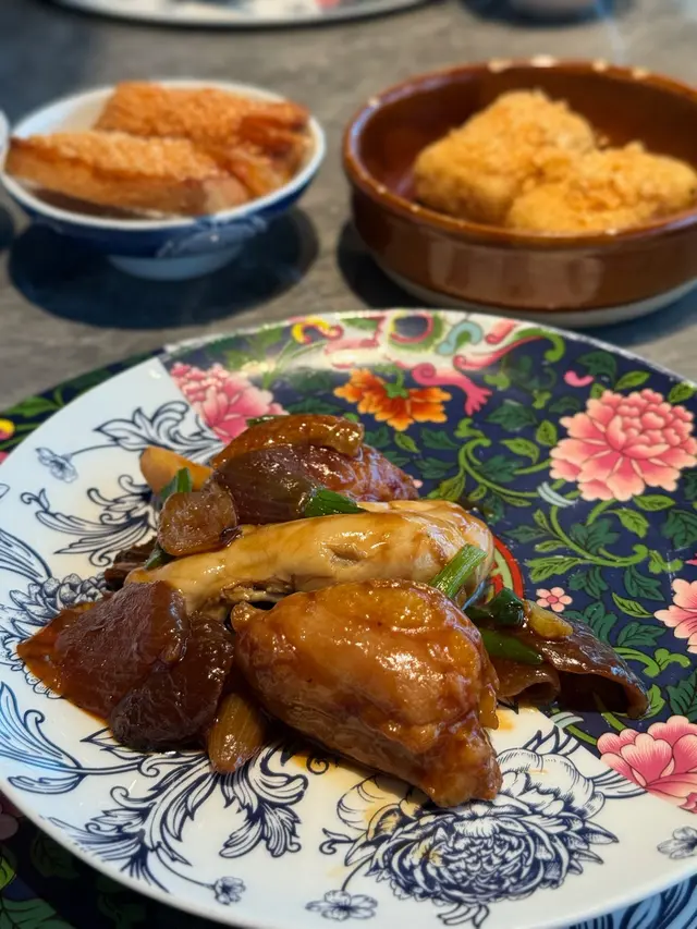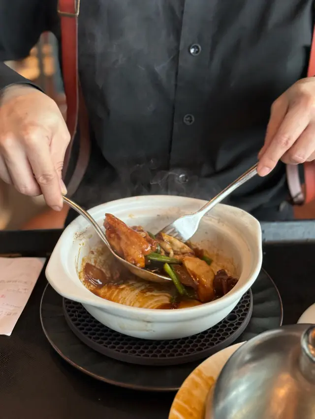 主菜以瓦煲盛載,蔥爆龍蝦鑊氣十足🦞龍蝦肉亦十分爽口🦪鮮蠔煀鷄蠔肉肥美飽滿,雞件肉質嫩滑