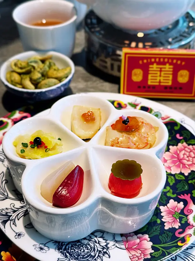 前菜擺盤精緻,牡丹蝦爽口彈牙,蟶子王配上泡椒十分惹味🍅蕃茄仔酸酸甜甜十分開胃
