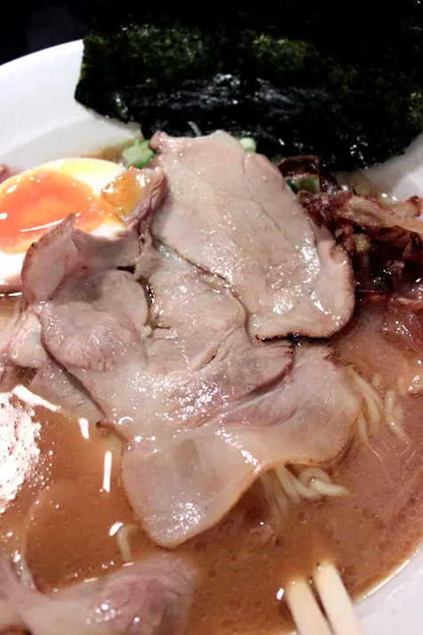 叉燒是帶點肥脂的腩位,薄切,再微微燒香,有嚼勁也有肉香,好吃。極上味噌拉麵和極上味噌叉燒拉麵,差別就是這幾片叉燒,如果你喜歡吃肉,別吝嗇這二十元,這幾片叉燒絕對值回票價。
