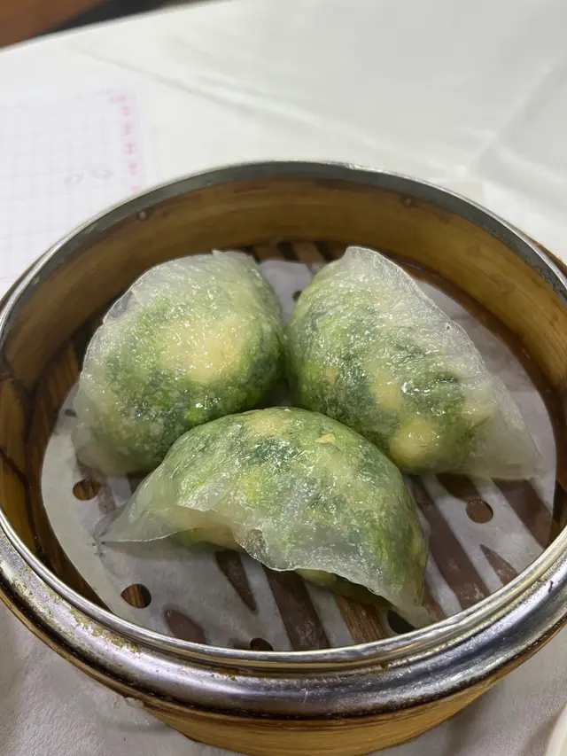鮮蝦豆苗餃菜量超多,估計用咗菠菜,食落清新唔膩。