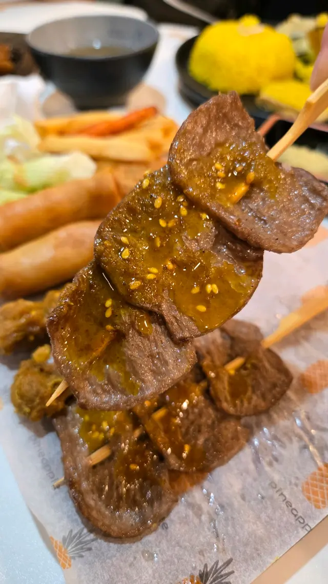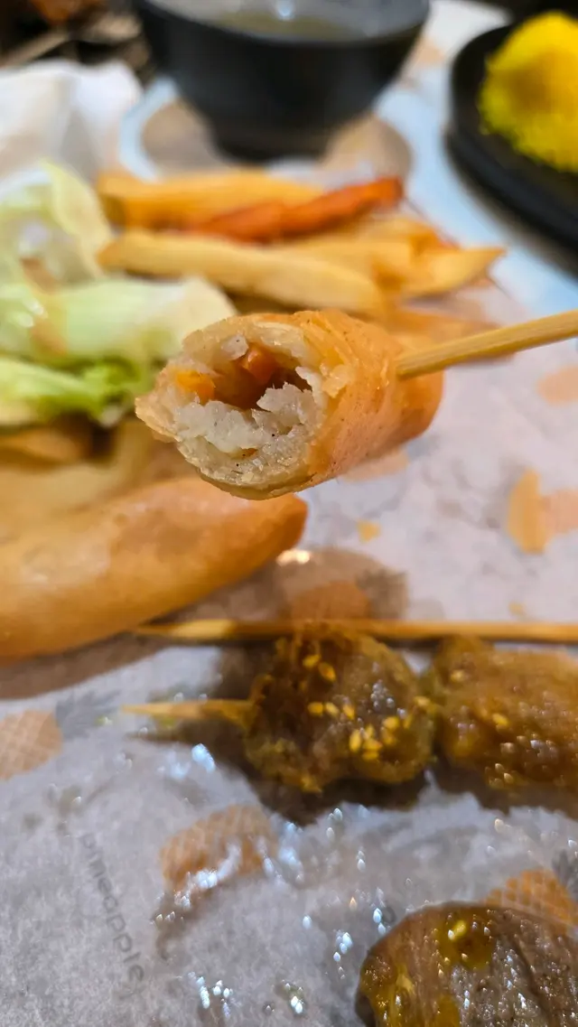 入素拼盤可以一次過品嚐多款小食既絕佳選擇。炸春卷外皮酥脆,內餡以新鮮蔬菜為主。素樂雞外層香脆,內裡多汁。牛肉串燒與雞肉串燒利用植物蛋白模仿肉類既質感同埋味道,令人難以相信係純素料理。