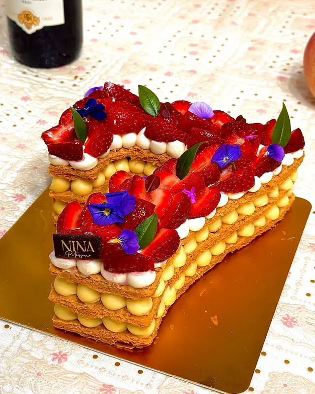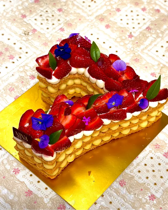 💕 最近選購了一個數字造型的士多啤梨拿破崙蛋糕!