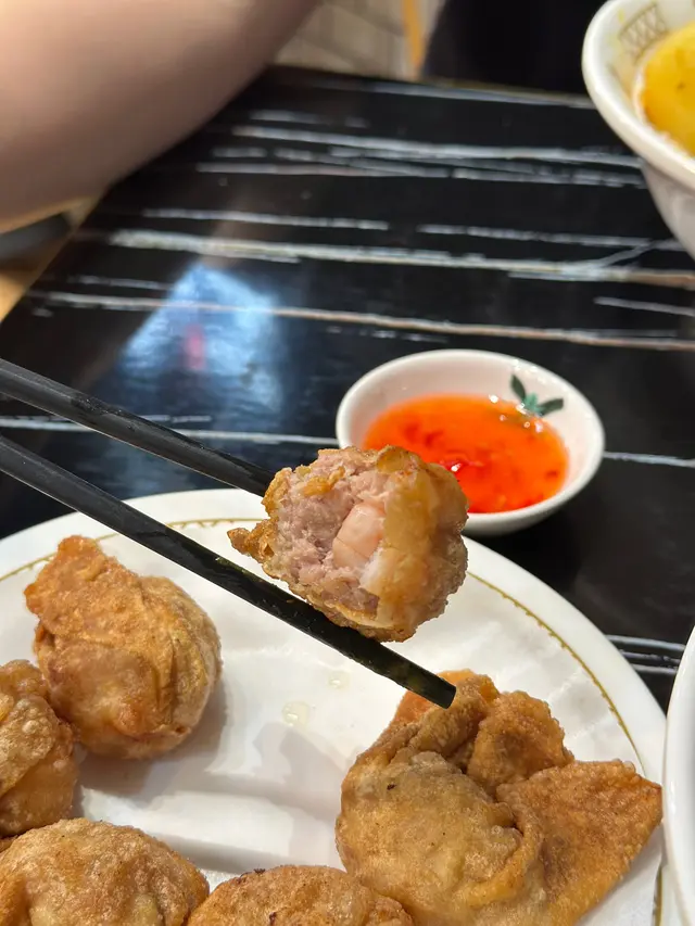 小食叫左生炸鮮蝦雲吞,呢個好有誠意,真係原隻雲吞拎去炸,入面餡料好多,有曬蝦同豬肉,炸到外皮好脆酥!
