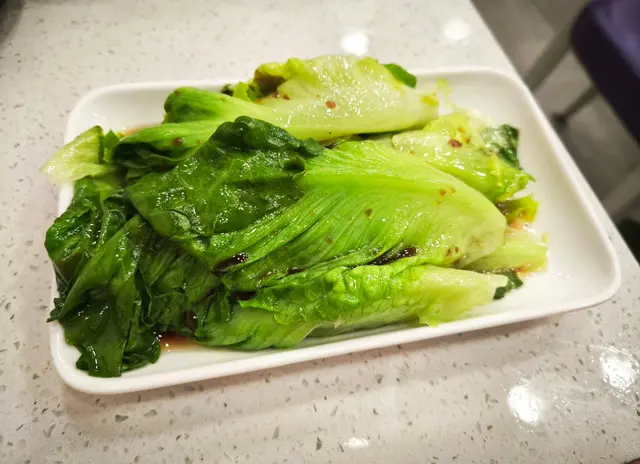 清清地嘅白灼生菜, 淋上一層豉油~ 生菜保持翠綠, 入口爽脆多汁