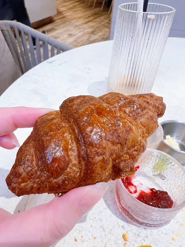 All Day Breakfast份量多,自家煙燻三文魚加左洋蔥增添了甜香,而炒滑蛋、大啡菇、煙肉、英式豬肉腸、沙律菜,全部不錯,仲有脆既酸種牛角包同自家製英式鬆餅