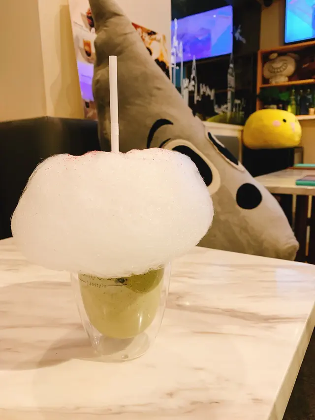 連野食都配合返店鋪既裝修 飲品上面都有雲朵既裝飾 非常得意!我自己就點左綠茶忌廉沙冰,軟綿綿既綿花糖上面灑上紅莓味既碎碎,夾住綿花食 酸酸甜甜 好好味。而綠茶沙冰調較既味道都好合我心意!無綠茶既苦澀又唔太甜,讚讚!