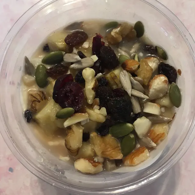 Greek Yogurt 質地較為稠杰,加入各種乾果如蘋果、香蕉、堅果類、提子、南瓜籽等等。 味道很易入口又富有層次感。 👍🏻後來得悉可減肥 正!