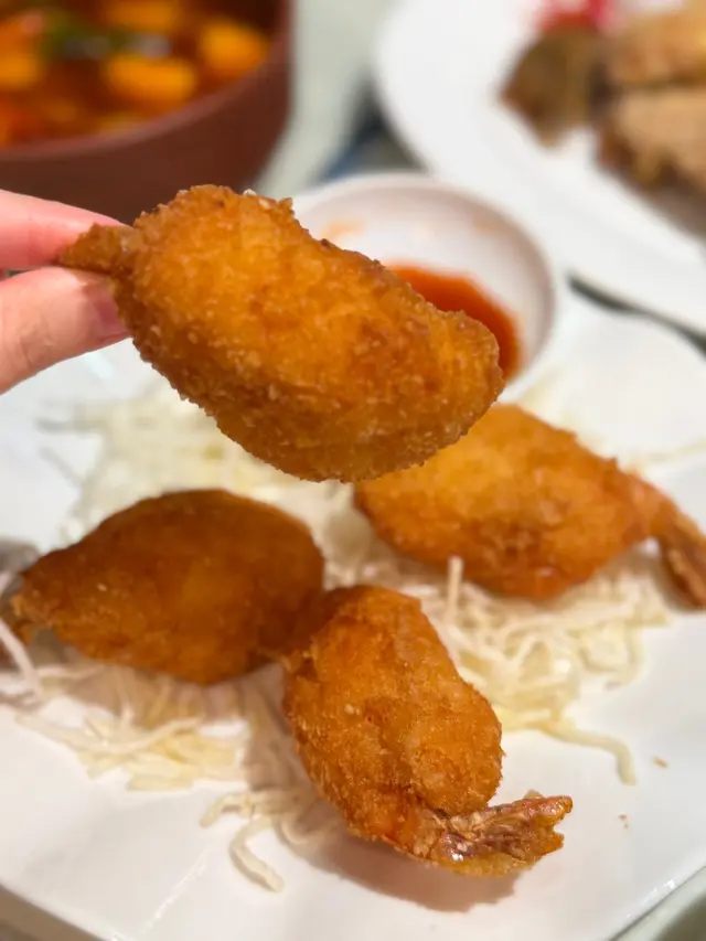 全晚最懷舊必定係錦鹵雲吞!😲 呢個菜式而家好少酒樓會做,炸雲吞脆卜卜,配嘅唔係普通甜酸汁,而係似咕嚕肉汁,裏面仲有蝦球、叉燒同豬潤,味道層次豐富,真係重現舊式酒樓風味🎩。