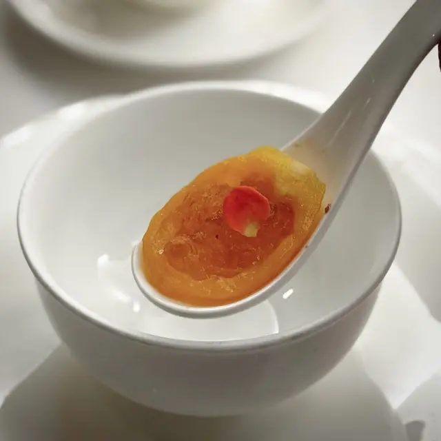 琥珀話梅樹番茄$118!琥珀乃桃膠入口很爽滑,配襯有高山紅寶石之稱的樹番茄,吃起來帶點百香果的味道好香甜可口。