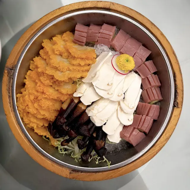 時令山珍刺身$328!今天我們能夠品嚐到黑皮雞樅菌、新鮮黃耳、香格里拉松茸及普洱魔芋。