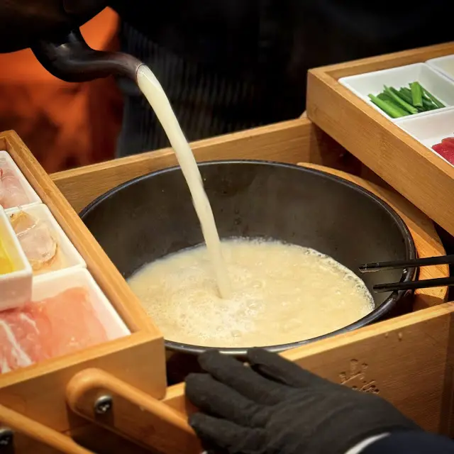 服務員繼續將豐盛的食材放入熱湯之內,炮製成一碗超級勁豐富的正宗雲南過橋米線。