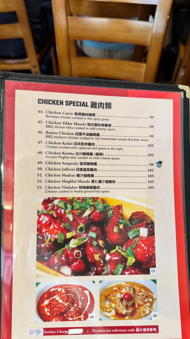 $105「白汁咖哩雞(微辣) Chicken Korma」:餐牌咁樣寫《Ancient Mughlai dish cooked on mild creamy spices》,Mughlai dish 蒙兀兒菜係印度🇮🇳喺蒙兀兒帝國時代發展出嚟嘅烹調風格,係受中亞風格強烈影嚮嘅北印度菜🇮🇳;「白汁咖哩」夠濃郁又唔係好辣好啱食,雞肉就煮得好腍🤣