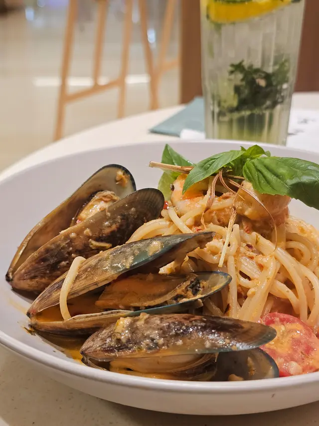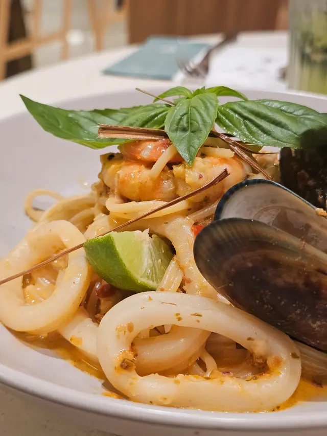 ➡️上菜時看到的反應是,嘩!蠻多海鮮熟喔~海鮮熟度煮得剛好,鮮嫩甜美,冬蔭功醬汁好出色,兼且好掛汁,每條意粉都沾滿冬蔭功醬汁,鍾意酸辣味夠開胃