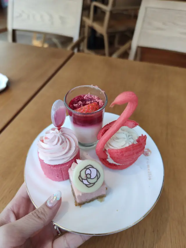 甜點分別包括了伯爵茶忌廉泡芙、 紅桑子乳酪杯、 迷你芝士蛋糕和紅寶石朱古力卷。芝士蛋糕的口感一點也不膩,是我品嚐過最出色的芝士蛋糕!