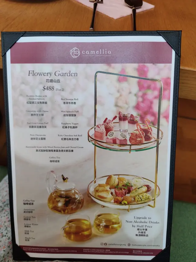 餐廳在下午時段只提供兩款的下午茶,並沒有其他食物選擇,分別是 $488需要提前預訂的「花語山丘」(兩位用)和 $99的炸物「Afternoon Tea Set」(一位用),今次我們便選了「花語山丘」