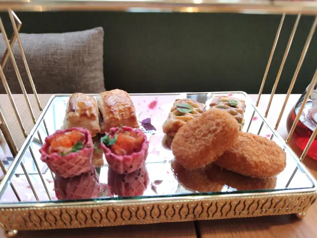 鹹點分別包括了香草牛肉卷、紅菜頭三文魚脆籃、脆炸芝士球和迷你菠菜酥。脆炸芝士球混合了一些蟹肉忌廉,所以感覺上就好像品嚐沙律卷一樣,口感很 Creamy,讓人口舌生香,回味無窮