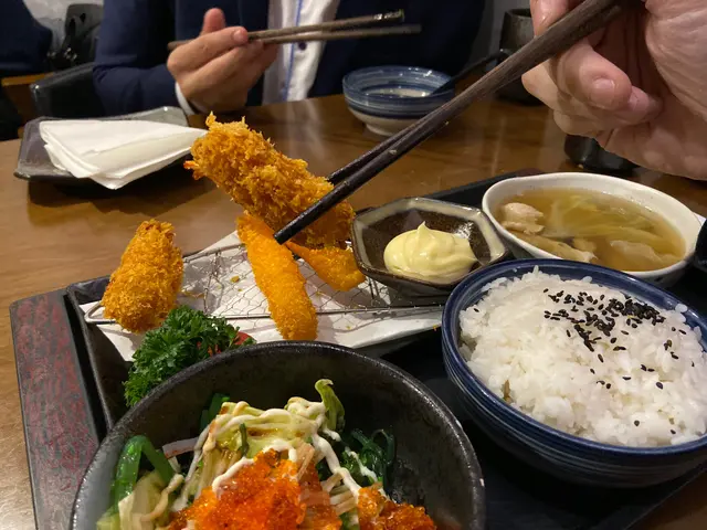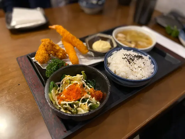 套餐仲包一個飯,炸物拼盤(吉列炸蝦,吉列蠔),一份蟹子沙律同埋豚肉湯 ,有好多食物非常豐富!