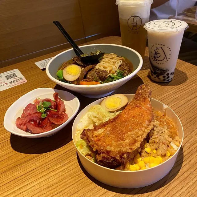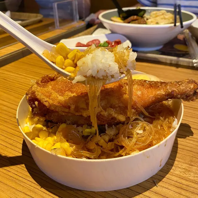 這裏的便當都有不少款式,今次朋友就叫了最貴的香酥炸雞腿便當🍗賣相非常吸引,有隻大大炸雞腿、粉絲、粟米、半隻滷蛋和菜,超豐富😍😍這隻香酥炸雞腿,味道一啲都唔馬虎,炸到外層很酥脆,但不算很油膩👍🏼粉絲和粟米都簡單炒過,不是簡單煮熟就算,所以每啖飯都很豐富,不會只有肉跟飯🥳好食!