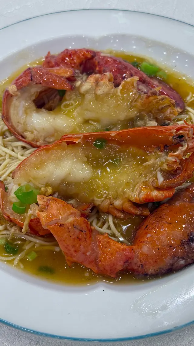 $138「上湯美國龍蝦🦞一隻送伊麵底」:原隻龍蝦🦞肉質幾鮮甜,配埋上湯煮伊麵一齊食,好夾🤣