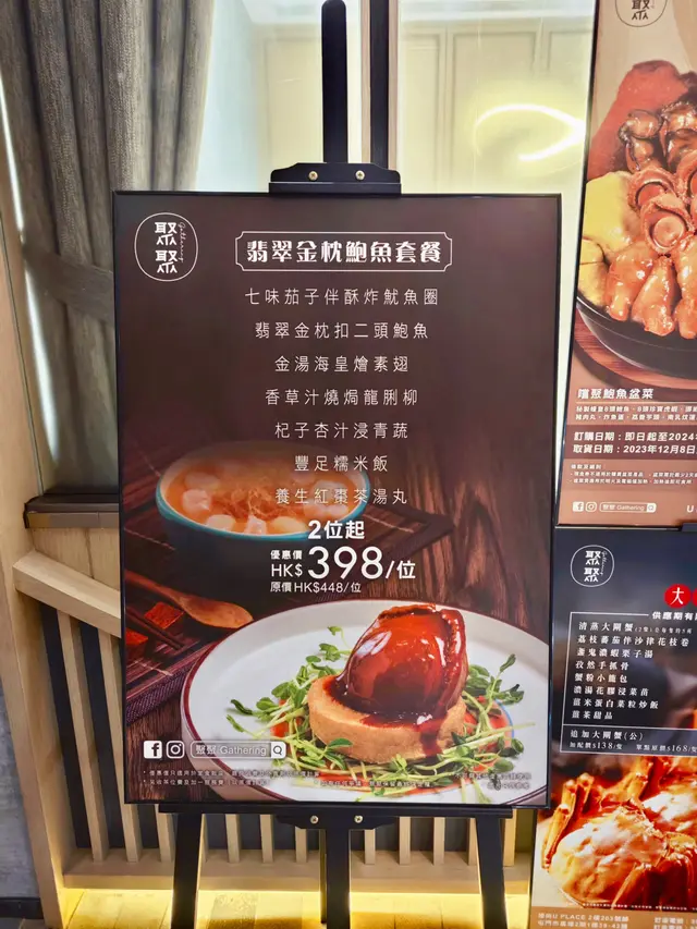 這晚套餐嘅重頭戲~二頭鮑魚有我掌心咁大🥳 用刀叉慢慢鋸,吃得夠爽!鮑魚超級彈牙滑嫰 ,加埋秘製醬汁💗入味鮮香,底下配有炸嫩豆腐和炒菜苗,整體豐富味美。