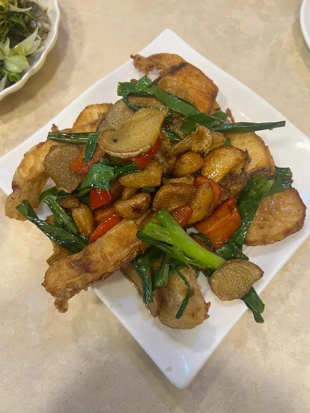 爽滑脆魚皮則是一道令人驚喜的小吃,魚皮的酥脆口感。當我咬下去的瞬間,魚皮的脆感與香氣瞬間在口中爆發,再配上花絲花翻薑絲讓人感受到一種無法抗拒的美味。這道小吃的調味簡單卻恰到好處,搭配一些辣椒醬或醋,讓整體的味道更加豐富。