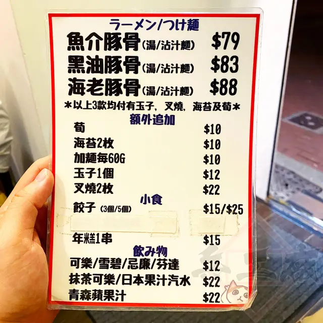 餐廳可以提供既款式唔多,餐牌上只有三款,其實款式越少即係餐廳更加專注整拿手拉麵🍜。小編提提大家,原來沾麵湯底想飲埋既話,就可以叫店員加水💦。位置靠近新墟輕鐵站🚟,行去紅橋方向。餐廳裝修非常有和風感覺,一眼易見,店舖細細非常親民👀。