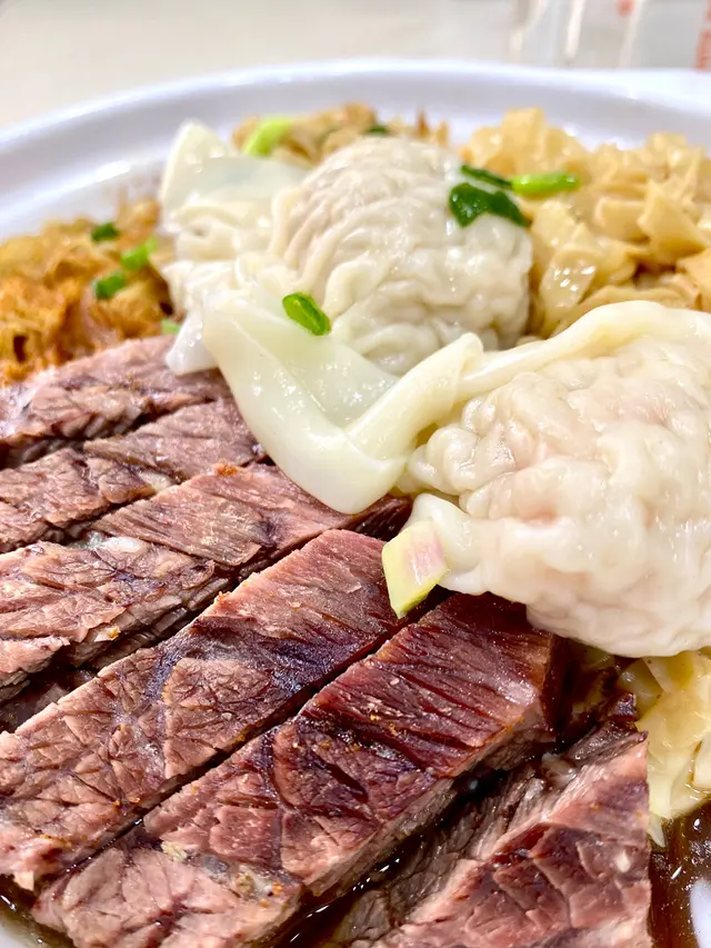 先來一碗招牌清湯牛坑腩河。湯色清亮,調味輕,帶牛骨與蔥香,喝到尾也不覺口渴。半肥瘦的牛坑腩切件厚薄得宜,軟而易咬開,牛油味香;河粉新鮮幼滑,不糊口。再試蝦籽牛腩雲吞撈粗麵。牛腩燜得通透,簡單調味已很入味,牛味濃;雲吞顆顆飽滿,蝦仁脆口有彈性,調味輕,咬開有鮮甜;撈麵粗身有嚼頭,蝦籽提香但不搶味。