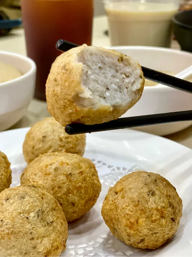 小吃點了腩汁甜蘿蔔與蜆蚧鯪魚球。蘿蔔無渣無根,吸滿腩汁,清甜入味。鯪魚球一份五顆,個頭比乒乓球還大,外層輕炸,裡面彈牙,魚香濃而不腥,調味克制。